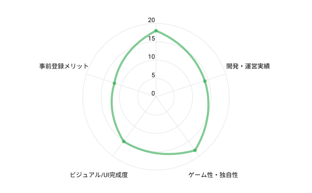 ビジュアル/UI完成度(最大20)15 / 202Dドット絵のように見えるが実際は3D構造という表現が特徴。発売前のため最適化・UIの細部は今後の磨き込み余地もある。